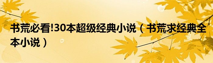 关于书荒必看!30本超级经典小说,书荒求经典全本小说这个很多人还不知道,今天菲菲来为大家解答以上的问题,现在让我们一起来看看吧!