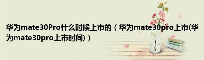 1.若您询问的是HUAWEI Mate 30 Pro 5G,HUAWEI Mate 30 Pro 5G的上市时间是2019年11月。