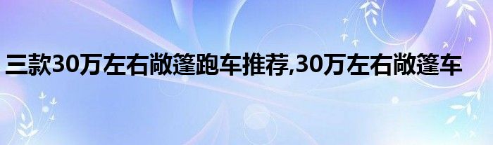 大家好,小常来为大家解答以上问题。三款30万左右敞篷跑车推荐,30万左右敞篷车很多人还不知道,现在让我们一起来看看吧!