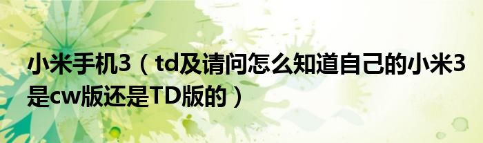 5,小米手机3(TD)是什么意思?:简要地说:是代表网络制式的英文缩写,比如移动、联通、电信等网络运营商的网络制式,TD代表的是移动通讯的一种制式。比如,CDMA也是通讯制式的一种。