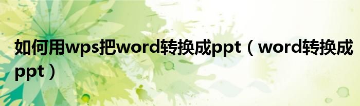 关于如何用wps把word转换成ppt,word转换成ppt这个很多人还不知道,今天菲菲来为大家解答以上的问题,现在让我们一起来看看吧!