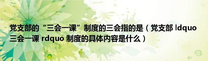 关于党支部的“三会一课”制度的三会指的是,党支部 ldquo 三会一课 rdquo 制度的具体内容是什么这个很多人还不知道,今天菲菲来为大家解答以上的问题,现在让我们一起来看看吧!