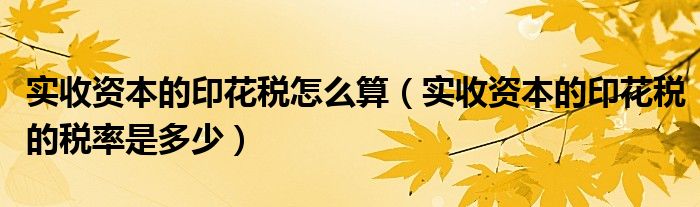 1、实收资本的印花税的税率是万分之五,如果500000的实收资本要交500000*5/10000=250元。