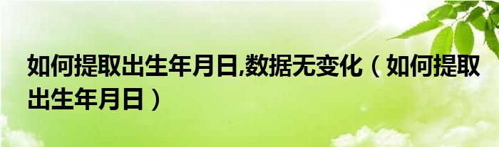 如何提取出生年月日,数据无变化(如何提取出生年月日)