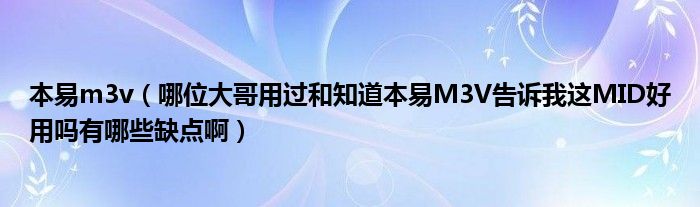 大家好,小常来为大家解答以上问题。本易m3v,哪位大哥用过和知道本易M3V告诉我这MID好用吗有哪些缺点啊很多人还不知道,现在让我们一起来看看吧!
