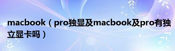 1,macbook pro有独立显卡吗 :13寸没有;15寸最低配没有;15寸高配、顶配均有。目前有显卡的MBP所配显卡为AMD Radeon R9 M370X 图形处理器,配备 2GB GDDR5 显存。如有用请采纳!