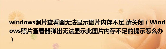 大家好,今天小悦来为大家解答以上问题。windows照片查看器无法显示图片内存不足,请关闭,Windows照片查看器弹出无法显示此图片内存不足的提示怎么办很多人还不知道,现在让我们一起来看看吧!