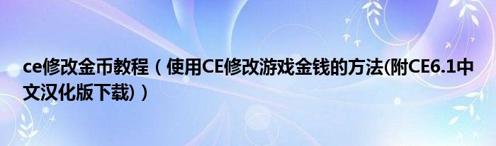 大家好,今天小悦来为大家解答以上问题。ce修改金币教程,使用CE修改游戏金钱的方法(附CE6.1中文汉化版下载)很多人还不知道,现在让我们一起来看看吧!