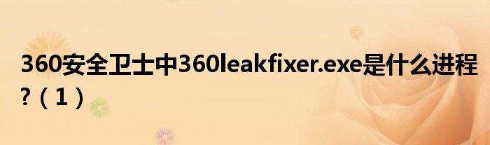 大家好,小太来为大家解答以上问题。360安全卫士中360leakfixer.exe是什么进程?,1很多人还不知道,现在让我们一起来看看吧!