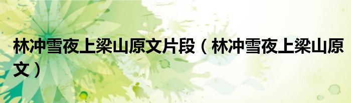 关于林冲雪夜上梁山原文片段,林冲雪夜上梁山原文这个很多人还不知道,今天菲菲来为大家解答以上的问题,现在让我们一起来看看吧!