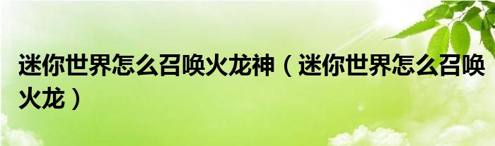 迷你世界怎么召唤火龙神(迷你世界怎么召唤火龙)