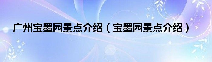 关于广州宝墨园景点介绍,宝墨园景点介绍这个很多人还不知道,今天菲菲来为大家解答以上的问题,现在让我们一起来看看吧!