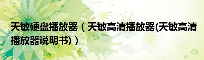 天敏硬盘播放器(天敏高清播放器(天敏高清播放器说明书))
