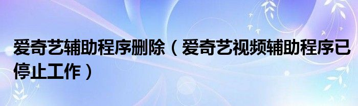 大家好,慧慧来为大家解答以上问题,爱奇艺辅助程序删除,爱奇艺视频辅助程序已停止工作很多人还不知道,现在让我们一起来看看吧!