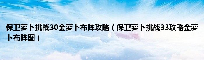 大家好,慧慧来为大家解答以上问题,保卫萝卜挑战30金萝卜布阵攻略,保卫萝卜挑战33攻略金萝卜布阵图很多人还不知道,现在让我们一起来看看吧!