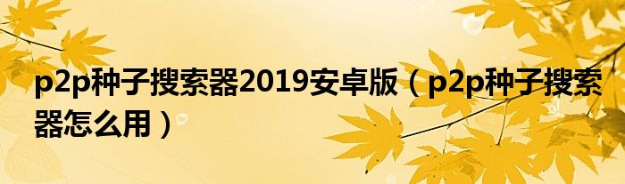大家好,慧慧来为大家解答以上问题,p2p种子搜索器2019安卓版,p2p种子搜索器怎么用很多人还不知道,现在让我们一起来看看吧!