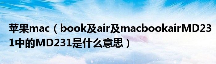 1,macbookairMD231中的MD231是什么意思:是型号,代表了你本本的类型,尺寸及出厂年份 比如说:MD102是12年初的13in-ch ProMD231是12年初的13in-ch AirMD313是11年末的13in-ch ProMC725是11年初的17in-ch Pro??M打头就是apple电脑希望能帮到你,谢谢
