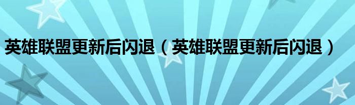 大家好,慧慧来为大家解答以上问题,英雄联盟更新后闪退,英雄联盟更新后闪退很多人还不知道,现在让我们一起来看看吧!