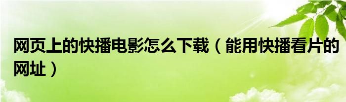 大家好,慧慧来为大家解答以上问题,网页上的快播电影怎么下载,能用快播看片的网址很多人还不知道,现在让我们一起来看看吧!