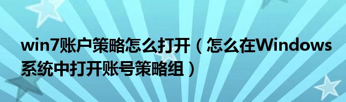 大家好,今天小悦来为大家解答以上问题。win7账户策略怎么打开,怎么在Windows系统中打开账号策略组很多人还不知道,现在让我们一起来看看吧!