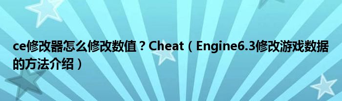 大家好,今天小悦来为大家解答以上问题。ce修改器怎么修改数值?Cheat,Engine6.3修改游戏数据的方法介绍很多人还不知道,现在让我们一起来看看吧!