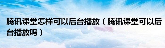 大家好,跳跳为你解答以上问题。腾讯课堂怎样可以后台播放,腾讯课堂可以后台播放吗这个问题很多人还不知道,现在让我们一起来看看吧!