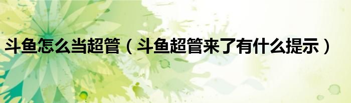 大家好,跳跳为你解答以上问题。斗鱼怎么当超管,斗鱼超管来了有什么提示这个问题很多人还不知道,现在让我们一起来看看吧!
