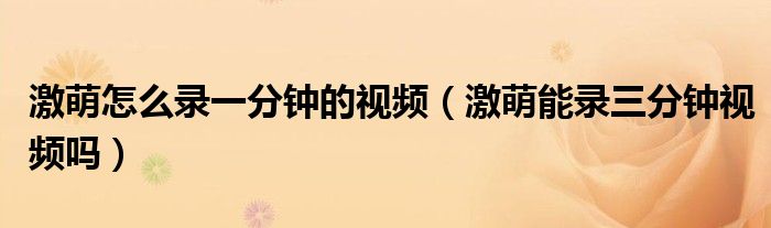 激萌怎么录一分钟的视频(激萌能录三分钟视频吗)