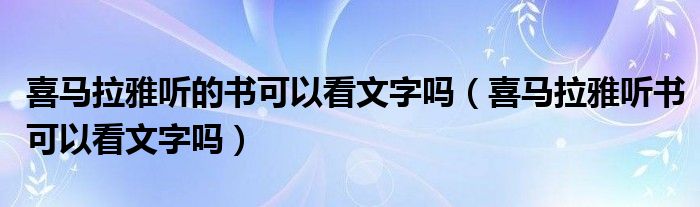 大家好,跳跳为你解答以上问题。喜马拉雅听的书可以看文字吗,喜马拉雅听书可以看文字吗这个问题很多人还不知道,现在让我们一起来看看吧!