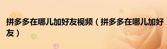 大家好,跳跳为你解答以上问题。拼多多在哪儿加好友视频,拼多多在哪儿加好友这个问题很多人还不知道,现在让我们一起来看看吧!
