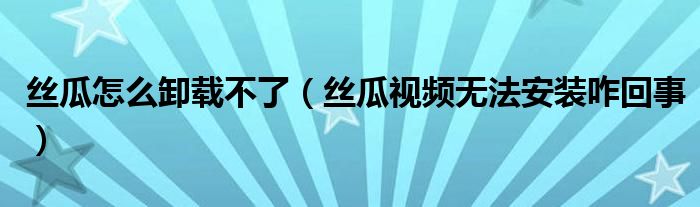 大家好,跳跳为你解答以上问题。丝瓜怎么卸载不了,丝瓜视频无法安装咋回事这个问题很多人还不知道,现在让我们一起来看看吧!