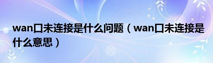 大家好,慧慧来为大家解答以上问题,wan口未连接是什么问题,wan口未连接是什么意思很多人还不知道,现在让我们一起来看看吧!