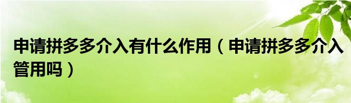 大家好,跳跳为你解答以上问题。申请拼多多介入有什么作用,申请拼多多介入管用吗这个问题很多人还不知道,现在让我们一起来看看吧!