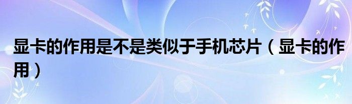 大家好,慧慧来为大家解答以上问题,显卡的作用是不是类似于手机芯片,显卡的作用很多人还不知道,现在让我们一起来看看吧!