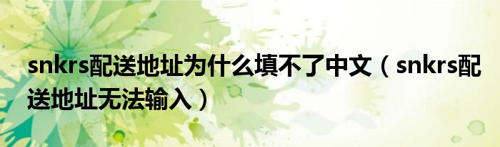 大家好,跳跳为你解答以上问题。snkrs配送地址为什么填不了中文,snkrs配送地址无法输入这个问题很多人还不知道,现在让我们一起来看看吧!