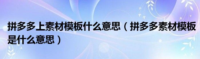 大家好,跳跳为你解答以上问题。拼多多上素材模板什么意思,拼多多素材模板是什么意思这个问题很多人还不知道,现在让我们一起来看看吧!