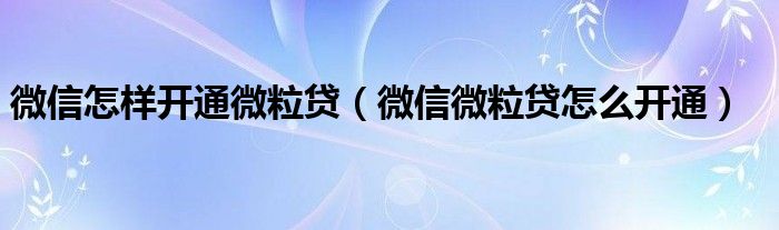 大家好,慧慧来为大家解答以上问题,微信怎样开通微粒贷,微信微粒贷怎么开通很多人还不知道,现在让我们一起来看看吧!