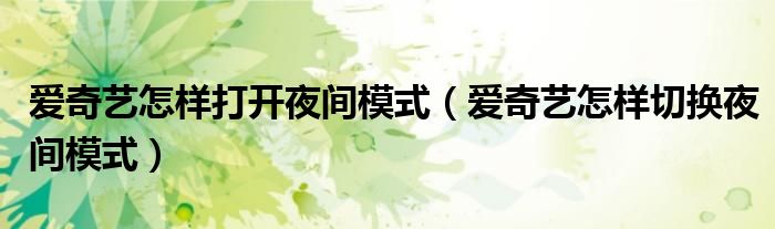 爱奇艺怎样打开夜间模式(爱奇艺怎样切换夜间模式)