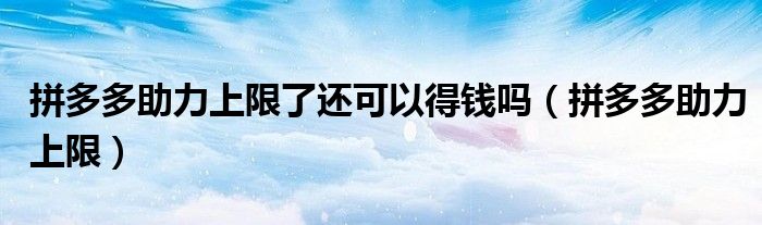 大家好,跳跳为你解答以上问题。拼多多助力上限了还可以得钱吗,拼多多助力上限这个问题很多人还不知道,现在让我们一起来看看吧!
