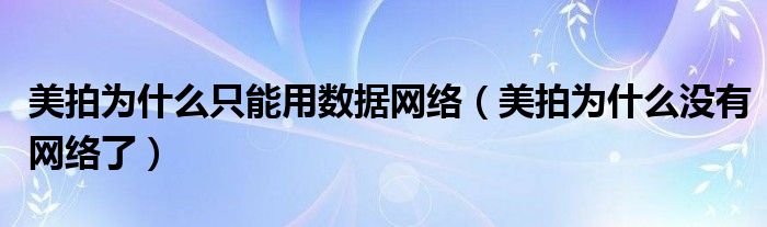 大家好,跳跳为你解答以上问题。美拍为什么只能用数据网络,美拍为什么没有网络了这个问题很多人还不知道,现在让我们一起来看看吧!