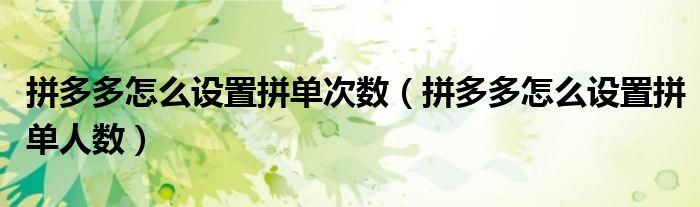 大家好,跳跳为你解答以上问题。拼多多怎么设置拼单次数,拼多多怎么设置拼单人数这个问题很多人还不知道,现在让我们一起来看看吧!