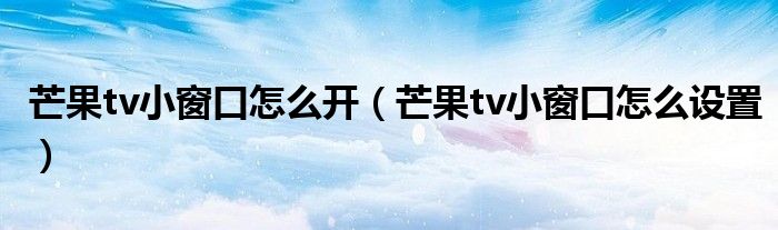 大家好,跳跳为你解答以上问题。芒果tv小窗口怎么开,芒果tv小窗口怎么设置这个问题很多人还不知道,现在让我们一起来看看吧!