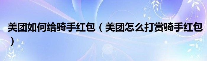 大家好,跳跳为你解答以上问题。美团如何给骑手红包,美团怎么打赏骑手红包这个问题很多人还不知道,现在让我们一起来看看吧!