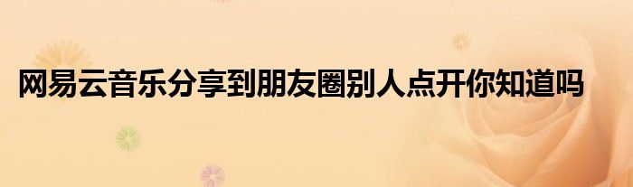 大家好,跳跳为你解答以上问题。网易云音乐分享到朋友圈别人点开你知道吗这个问题很多人还不知道,现在让我们一起来看看吧!