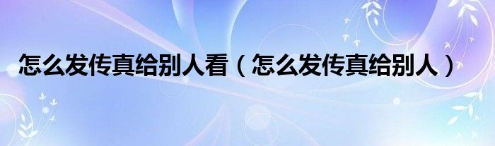 怎么发传真给别人看(怎么发传真给别人)
