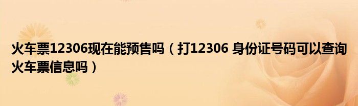 大家好,跳跳为你解答以上问题。火车票12306现在能预售吗,打12306 身份证号码可以查询火车票信息吗这个问题很多人还不知道,现在让我们一起来看看吧!