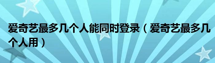 大家好,跳跳为你解答以上问题。爱奇艺最多几个人能同时登录,爱奇艺最多几个人用这个问题很多人还不知道,现在让我们一起来看看吧!