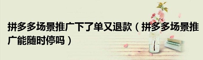 大家好,跳跳为你解答以上问题。拼多多场景推广下了单又退款,拼多多场景推广能随时停吗这个问题很多人还不知道,现在让我们一起来看看吧!