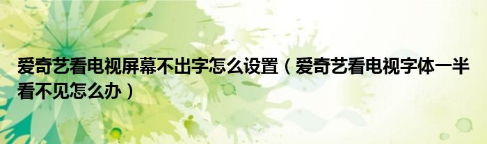 大家好,跳跳为你解答以上问题。爱奇艺看电视屏幕不出字怎么设置,爱奇艺看电视字体一半看不见怎么办这个问题很多人还不知道,现在让我们一起来看看吧!