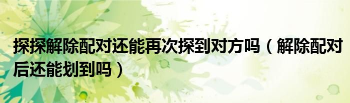 大家好,跳跳为你解答以上问题。探探解除配对还能再次探到对方吗,解除配对后还能划到吗这个问题很多人还不知道,现在让我们一起来看看吧!
